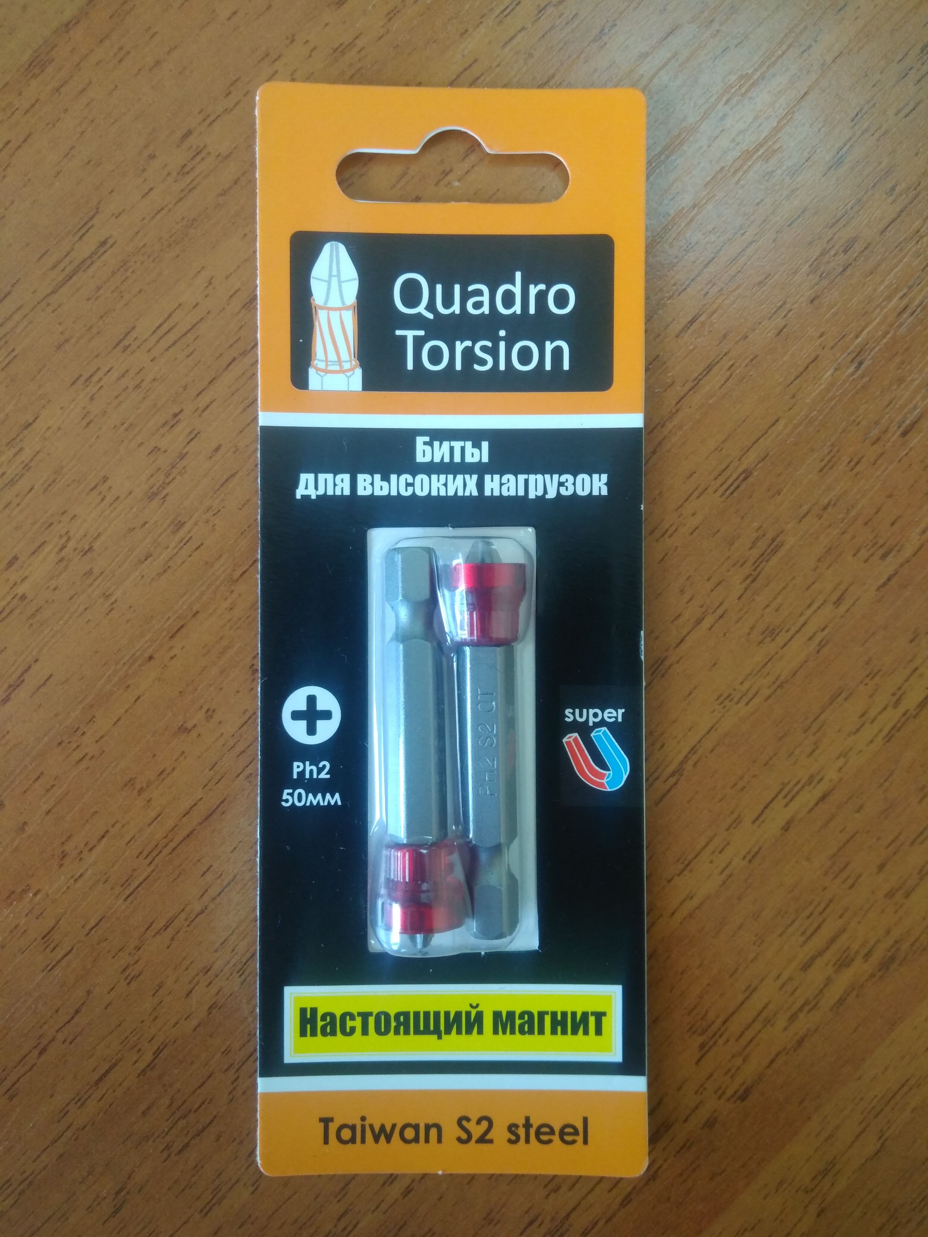 Бита 1/4 Ph2 50мм. Quadro Torsion С6,3 с магнитной насадкой (2шт блистер) (460250-2)