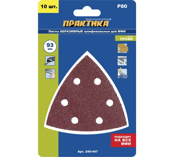 Шлифлист для резака 93 мм. Р80 ПРАКТИКА 10 шт. (240-447)