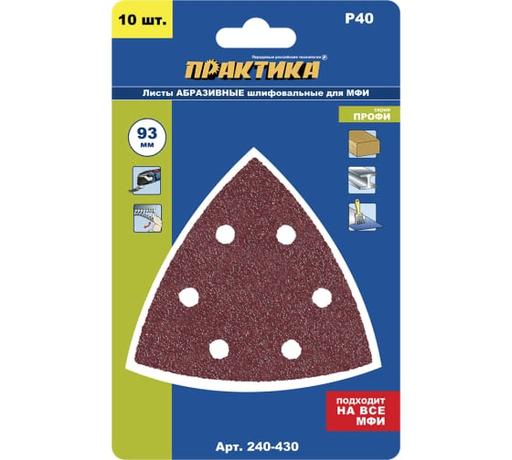 Шлифлист для резака 93 мм. Р40 ПРАКТИКА 10 шт. (240-430)