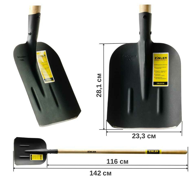 Лопата совковая 233х281мм с дерев. черенком 1200мм ZINLER (ЛСП2Ч1)