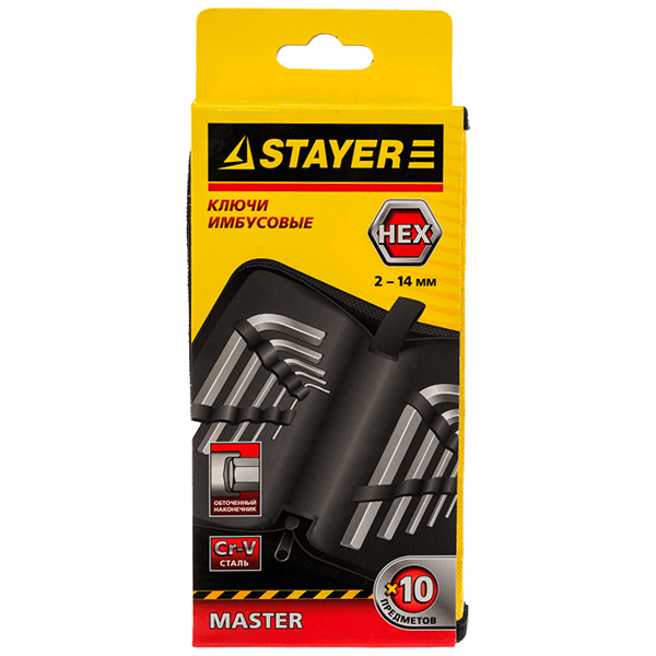 Набор ключей имбусовых (шестигранных) HEX (2-14) 10шт STAYER (2740-Н10)