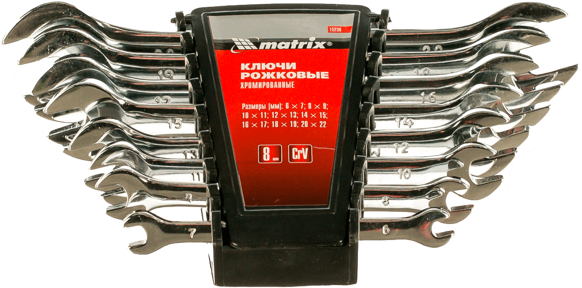 Набор ключей рожковых (6-22) 8шт хромированных MATRIX (15276)