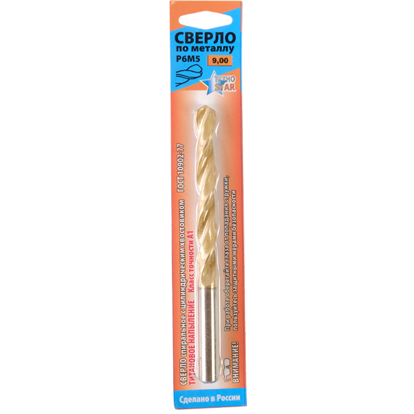 Сверло по металлу 9,00мм цил.хв. титан. ГОСТ10902А1 Р6М5-ШБ