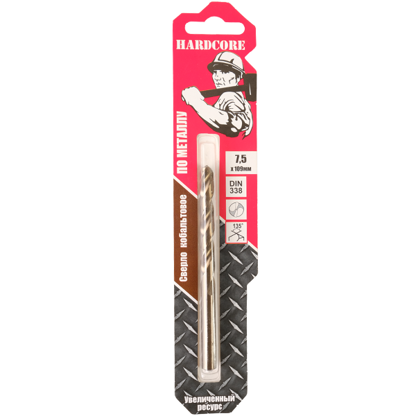 Сверло по металлу 7,50мм цил.хв. Hardcore Р6М5К5 Cobalt (141075)