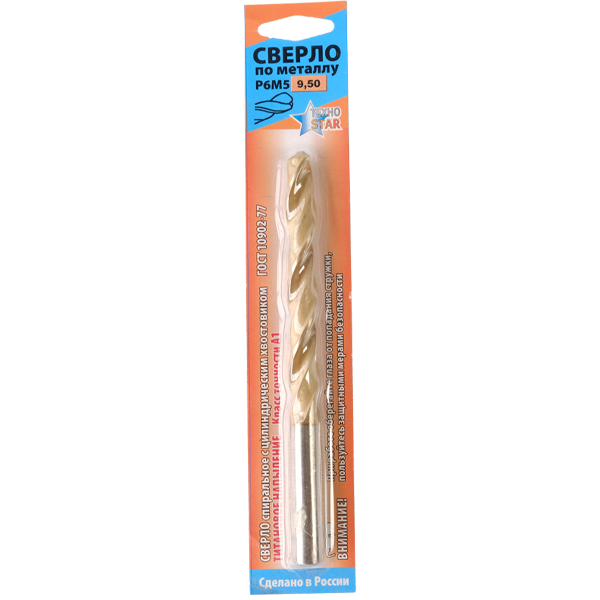 Сверло по металлу 9,50мм цил.хв. титан. ГОСТ10902А1 Р6М5-ШБ