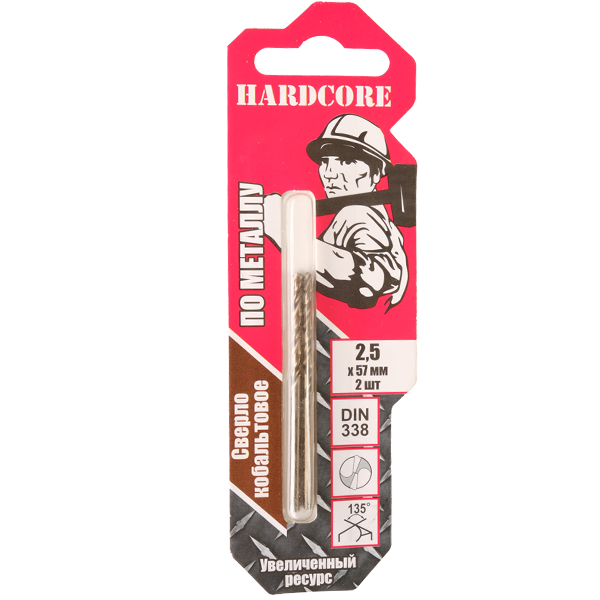 Сверло по металлу  2,50мм цил.хв. Hardcore Cobalt 2шт/уп (141025) в Ноябрьске