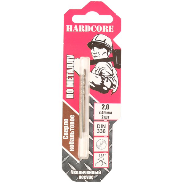 Сверло по металлу 2,00мм цил.хв. Hardcore Cobalt 2шт/уп (141020)