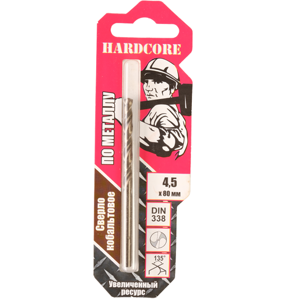 Сверло по металлу 4,50мм цил.хв. Hardcore Р6М5К5 Cobalt (141045)