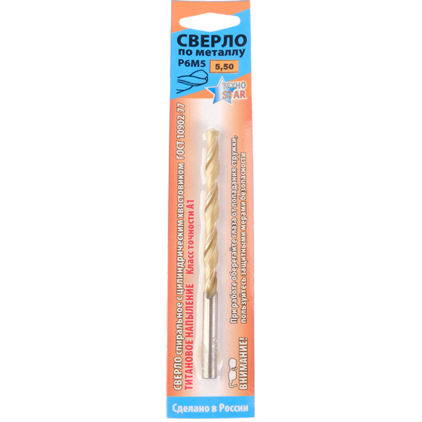 Сверло по металлу 5,50мм цил.хв. титан. ГОСТ10902А1 Р6М5-ШБ Скин-упак.