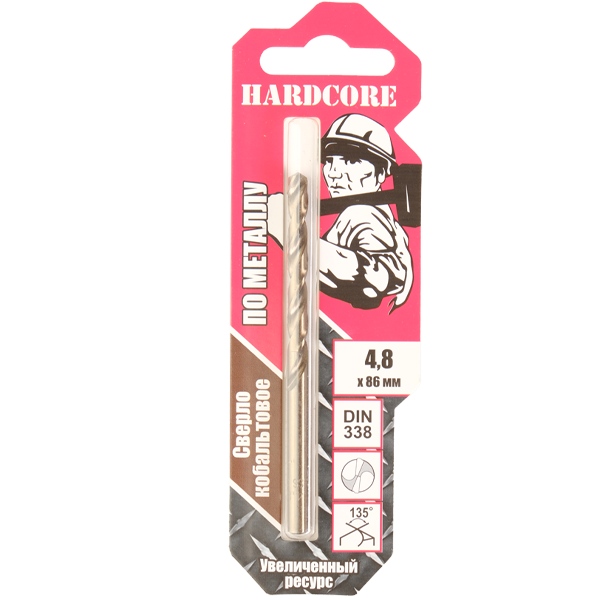 Сверло по металлу 4,80мм цил.хв. Hardcore Р6М5К5 Cobalt (141048)