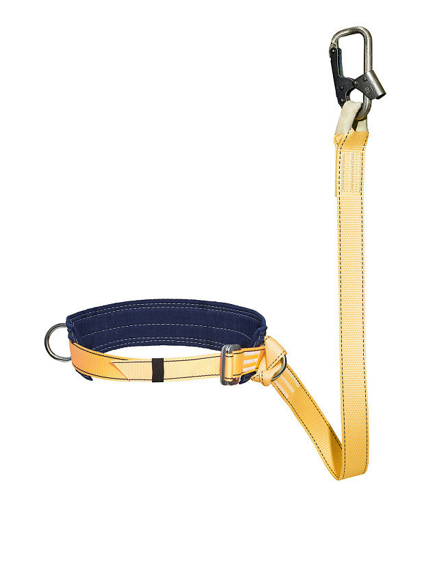 Страховочная привязь удерживает работающего. Она применяется всегда, когда есть вероятность падения. Привязь страховочная или страховочный пояс состоит из ремней, плотно охватывающих бедра и плечи и крепления. Промышленные альпинисты пользуются привязью для положения сидя. Корпус крепится в сидячем положении благодаря креплению, находящемуся в районе живота и лямок охватывающих пояс и ноги по отдельности. Существует еще привязь для позиционирования, удерживающая человека в удобном для работы положении. С 2015 года запрещено использование поясного ремня как замены страховочной привязи, так как из-за ударной нагрузки на позвоночник при позвоночник происходит тяжелое травмирование.